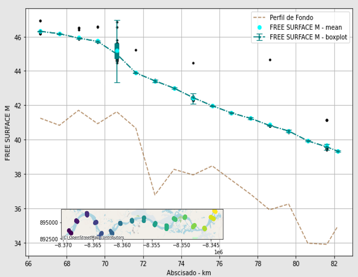 Visualización de información hidrodinámica 2D siguiendo el cauce del río (Proyecto con: EPM-PUJ).